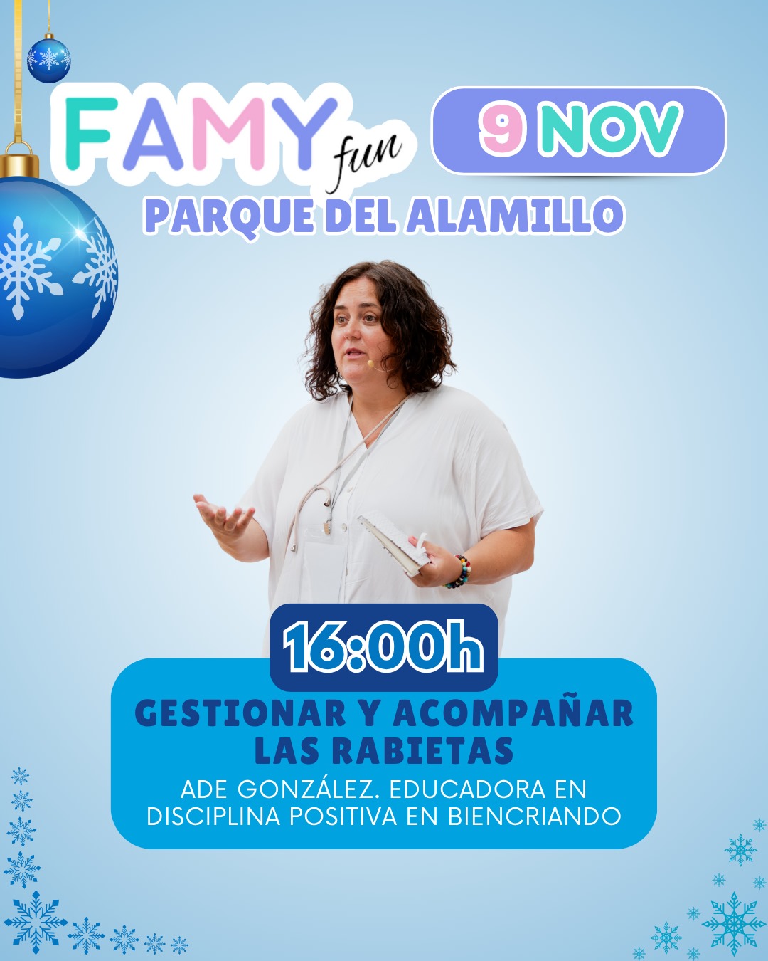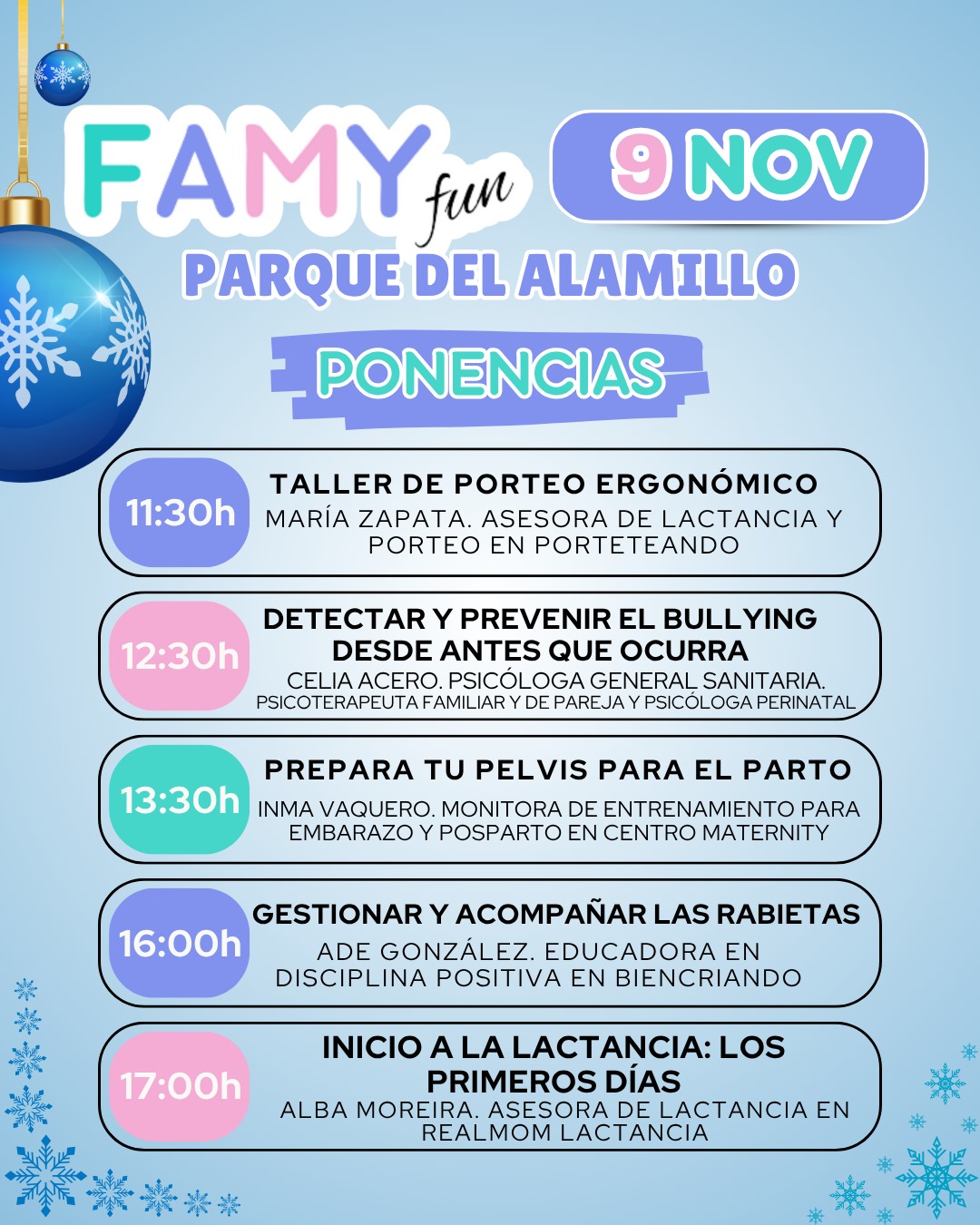 En FAMY Fun también encontrarás un espacio de formación y acompañamiento para madres, padres y futuras familias. A lo largo de la jornada se desarrolla un programa de charlas y ponencias impartidas por profesionales especializados en diferentes áreas de la maternidad, el parto, la crianza y el desarrollo infantil.